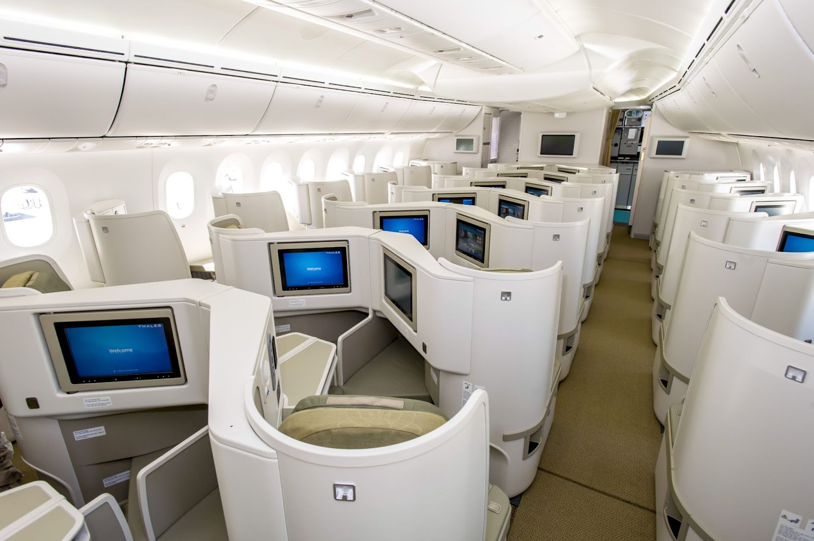 Each seat converts into a fully flat bed-a huge advantage for overnight travel. The 2-2 configuration means you will be sitting by a window or, depending on your preference, you'll have easy aisle access.